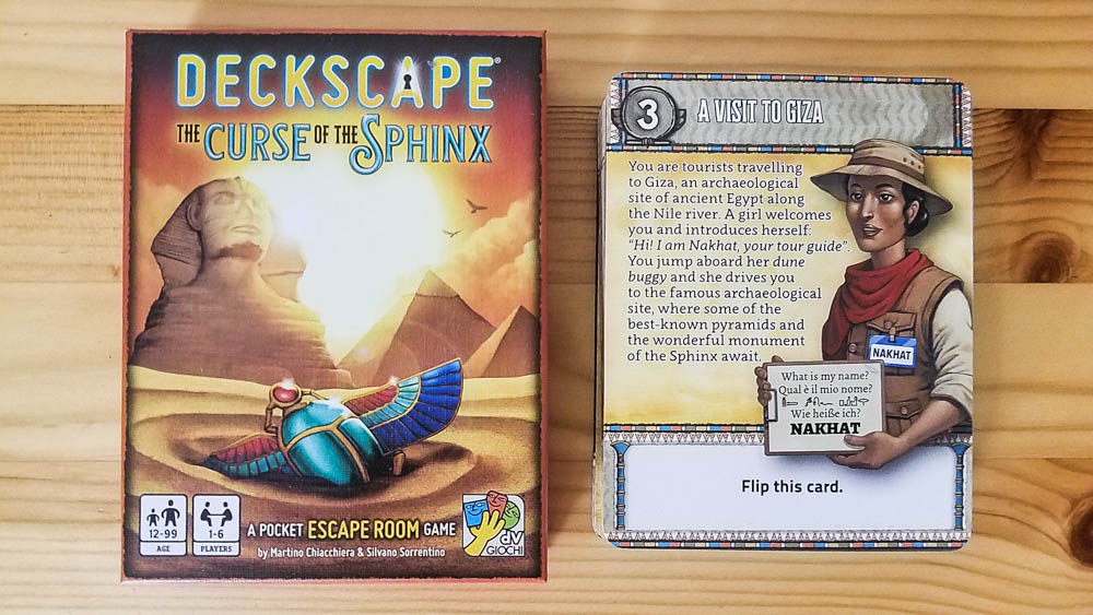 Deckscape: The Curse of the Sphinx is the sixth title in a series of cooperative games inspired by real escape rooms in which a group of people is “trapped” inside a room full of puzzles and odd items. The goal of the game is to solve puzzles, understand the plot of the story, and make intelligent use of the items provided in order to exit from the room as quickly as possible.
