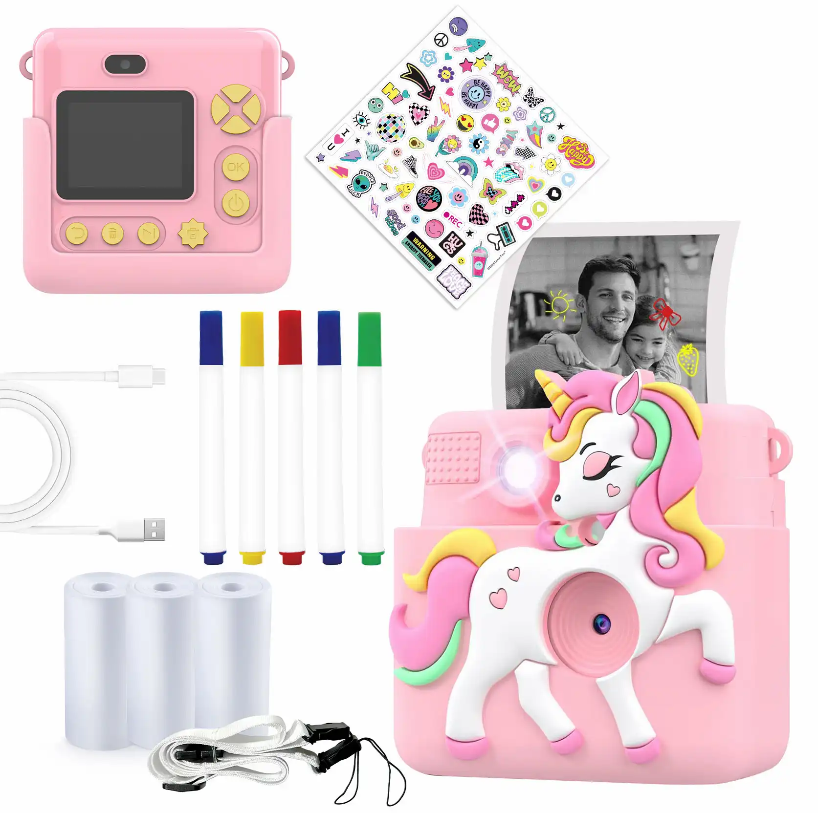 Функција за термичко печатење, 2″ LCD екран, 1080P видео, 20mp фотографија, интересна силиконска маска